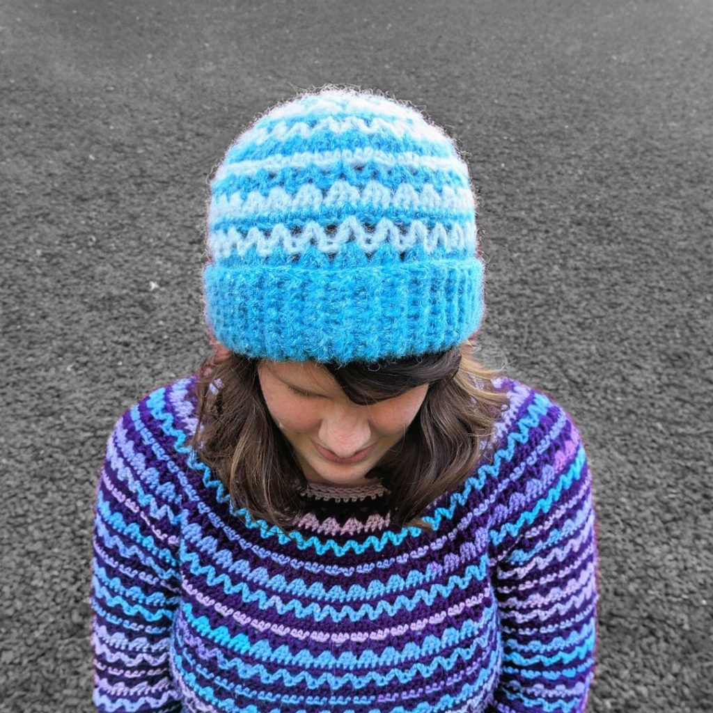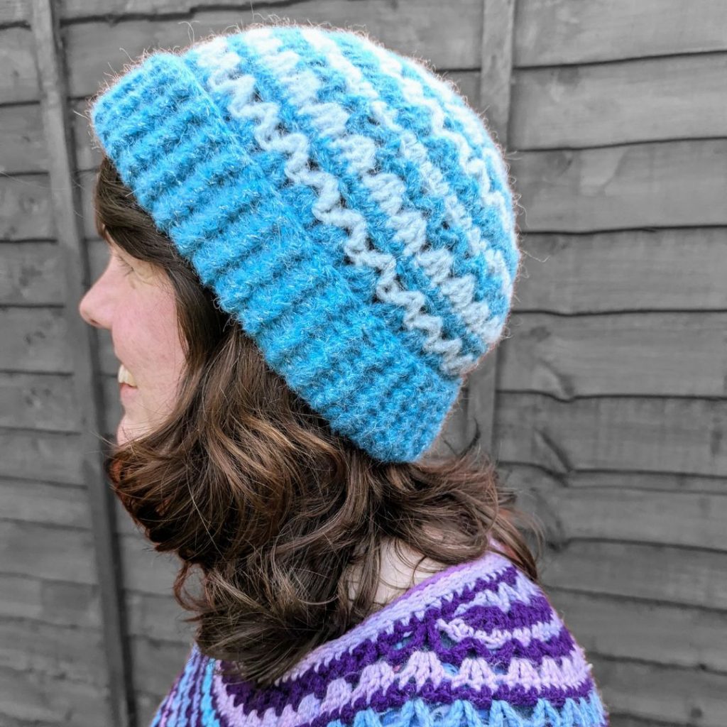 The Chameleon Hat is made using a simple 3 row repeat that uses only basic stitches. It’s from the same family as the Chameleon sweater, so it would be a good way to have a play with this stitch pattern. The pattern is available for free on Ravelry if you click on the pattern name or pictures. Or you can download it here.